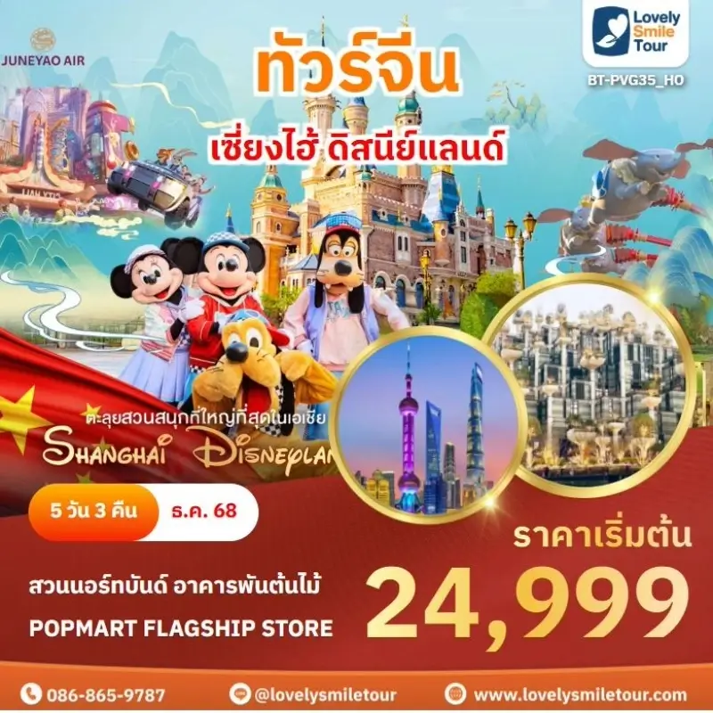 ทัวร์จีน – เซี่ยงไฮ้ ดิสนีย์แลนด์ สวนนอร์ทบันด์ อาคารพันต้นไม้ - POPMART FLAGSHIP STORE BT-PVG35_HO ราคาเริ่มต้น 24999 จำนวนวัน 5 วัน 3 คืน สายการบิน ระดับโรงแรม ดาวน์โหลด PDF จองผ่านไลน์ โทรจองเลย 086-865-9787 วันเดินทางราคาผู้ใหญ่11-15 ธ.ค. 6827,999 test