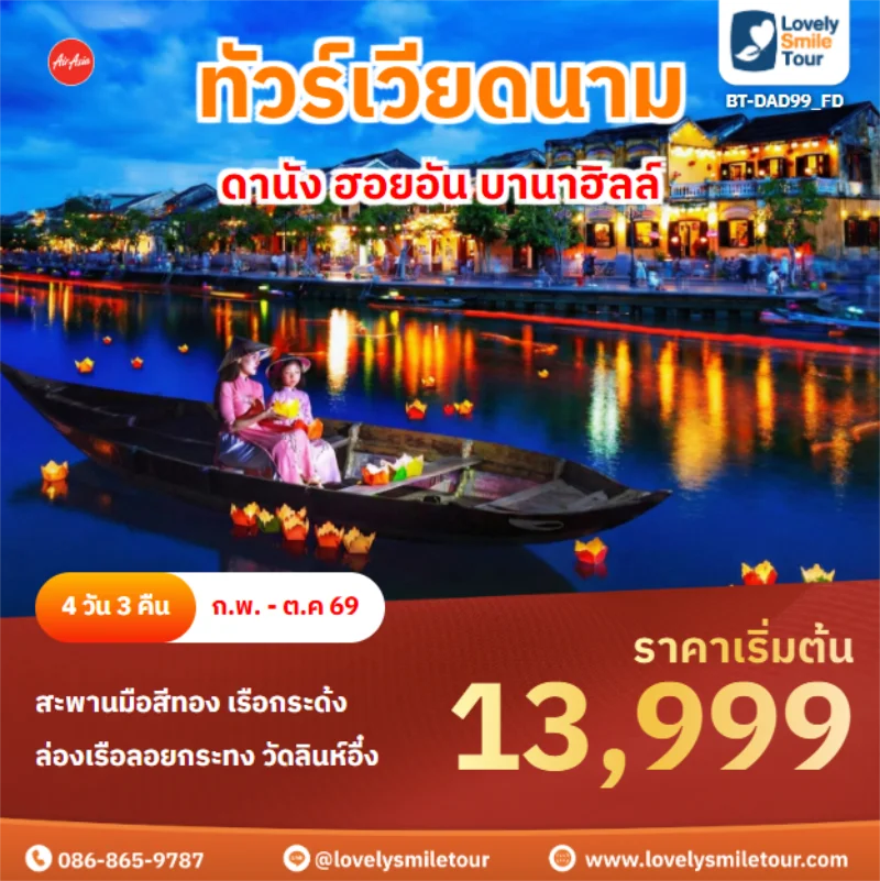 ทัวร์เวียดนาม – บาน่าฮิลล์ ดานัง ฮอยอัน ล่องเรือกระด้ง