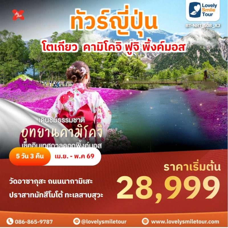 ทัวร์ญี่ปุ่น – โตเกียว คามิโคจิ ฟูจิ พิ้งค์มอส