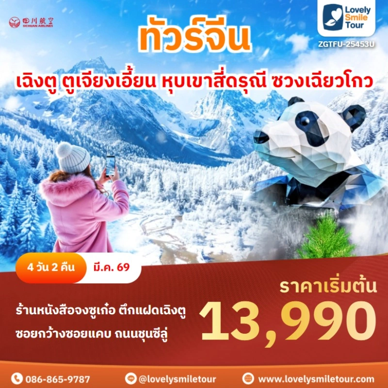 ทัวร์จีน – เฉิงตู หลี่เซี่ยน ตูเจียงเอี้ยน ภูเขาสี่ดรุณี ปี้เผิงโกว