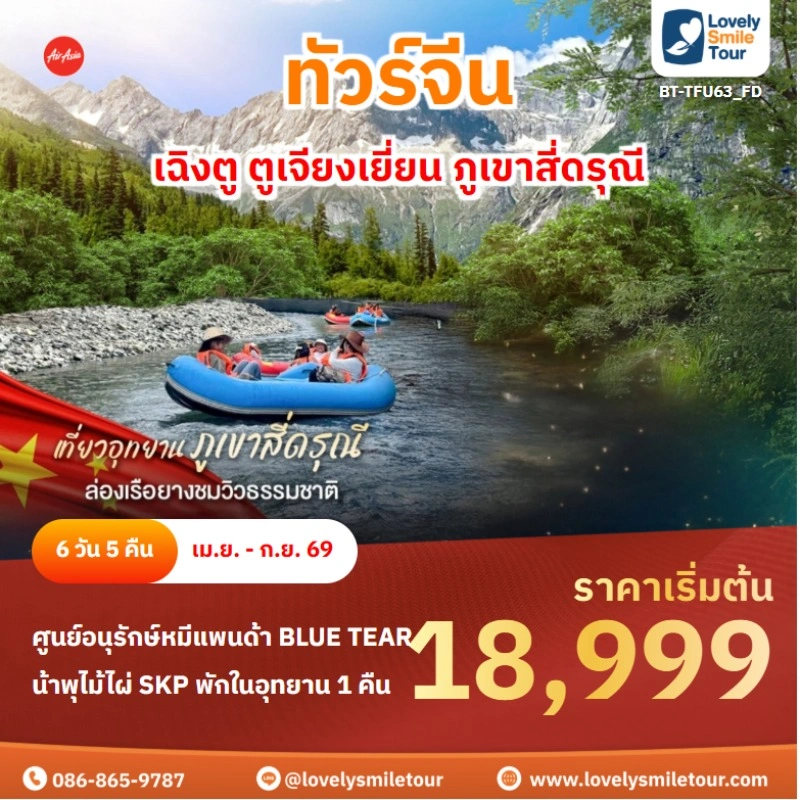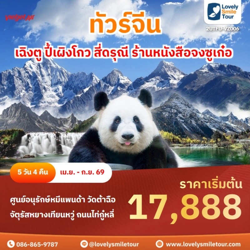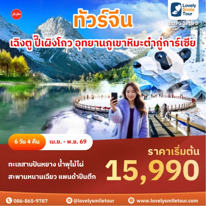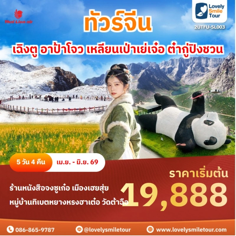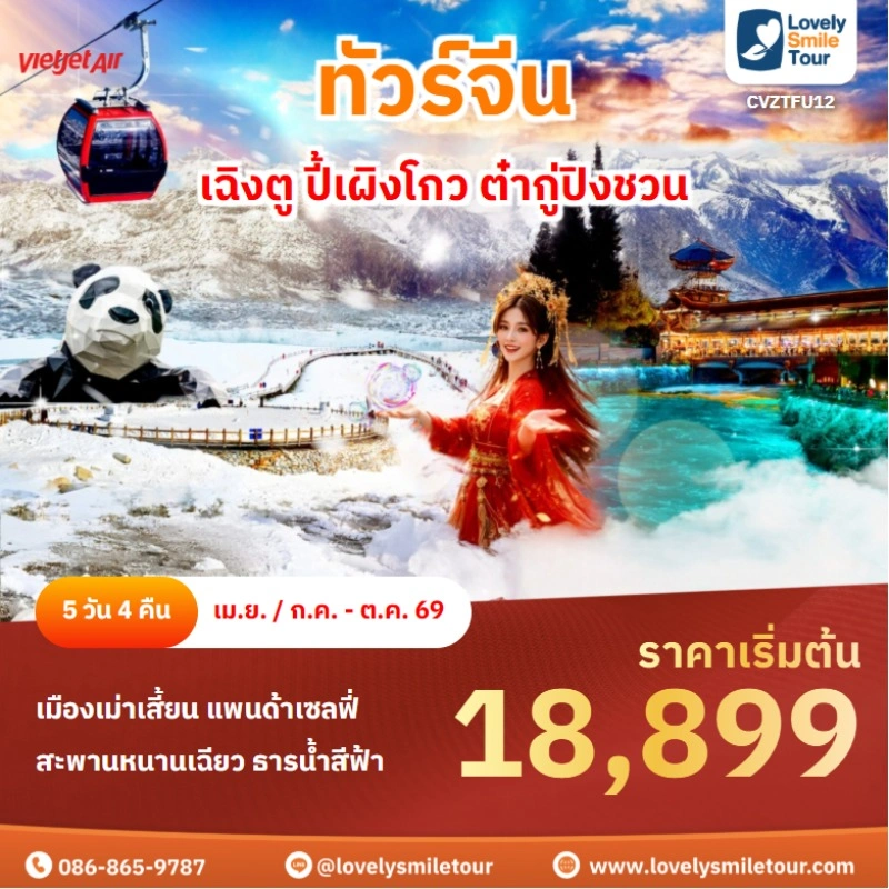 Lovely Smile Tour มีแพ็กเกจ ทัวร์เฉิงตู สี่ดรุณี หวงหลง จิ่วจ้ายโกว ให้เลือกหลายรูปแบบ มีทั้งแบบไม่เข้าร้านรัฐบาลและแบบเข้าร้านรัฐบาล พักโรงแรมระดับ 4-5 ดาว สายการบินมีทั้งแบบ Full Service และ Low Cost หากสนใจจองแพ็กเกจไหน แอดไลน์หรือโทรสอบถามได้เลย