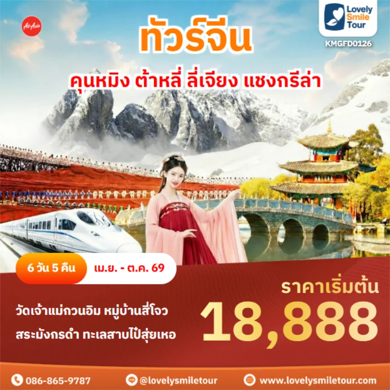 ทัวร์จีน – บินตรงเชียงใหม่ คุนหมิง ต้าหลี่ ลี่เจียง ภูเขาหิมะ