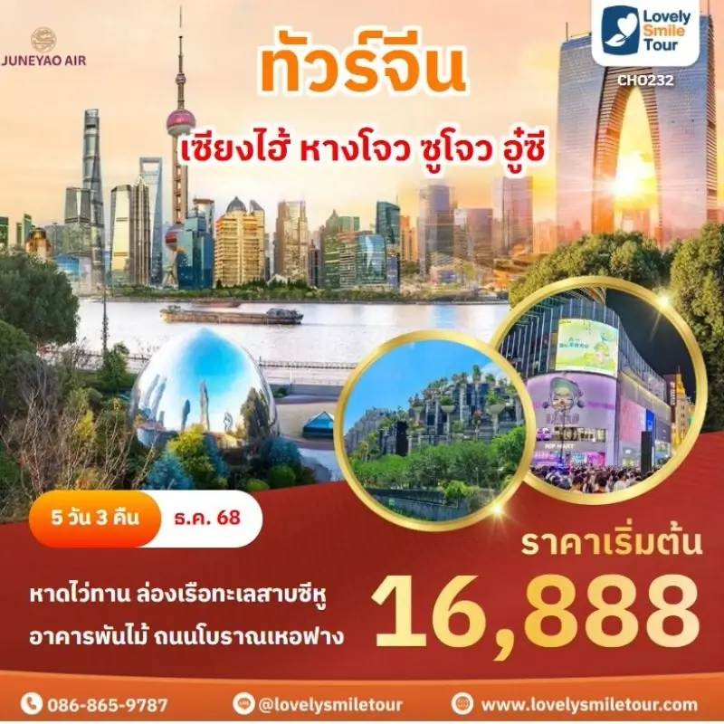 ทัวร์จีน – เซี่ยงไฮ้ หางโจว อู๋ซี ซูโจว เมืองโบราณจูเจียเจียว