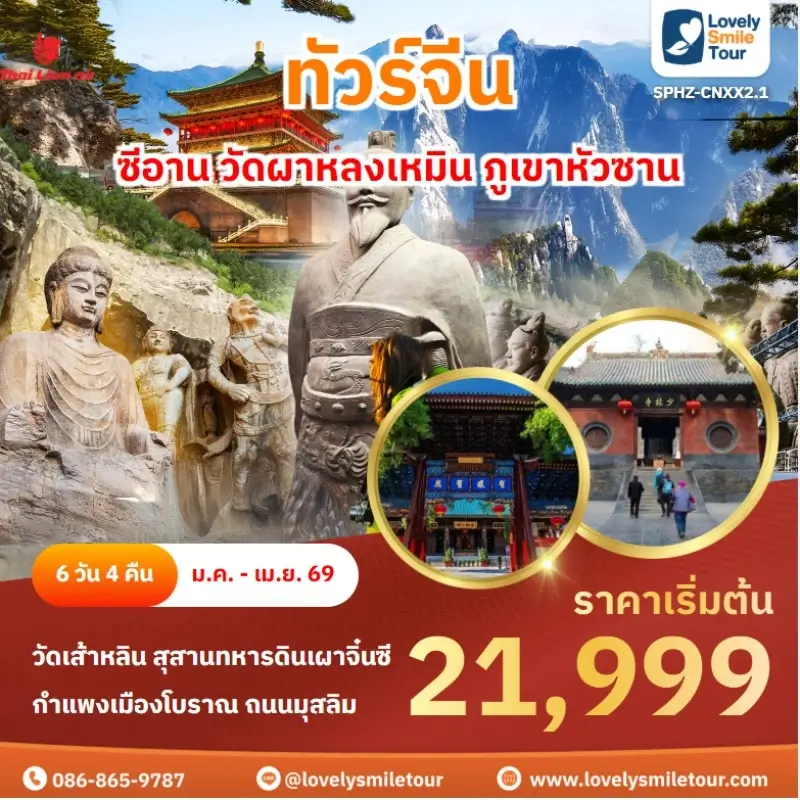 ซีอาน เป็นเส้นทางท่องเที่ยวที่จะพาย้อนกลับสู่อดีตอันรุ่งโรจน์ของจีนผ่านสถานที่สำคัญทางประวัติศาสตร์และวัฒนธรรม หากใครสนใจทัวร์ซีอาน สามารถทักมาสอบถามข้อมูลหรือแอดไลน์มาได้ที่ LINE ID : @lovelysmiletour ได้เลย