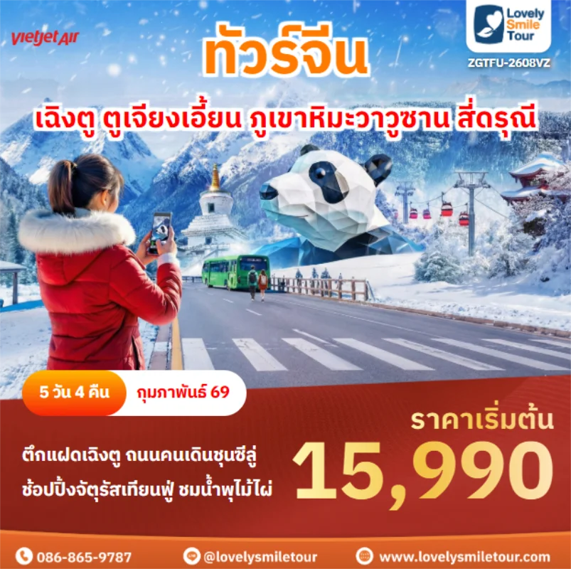 ทัวร์จีน – เฉิงตู หมีแพนด้า เขาหิมะวาวู