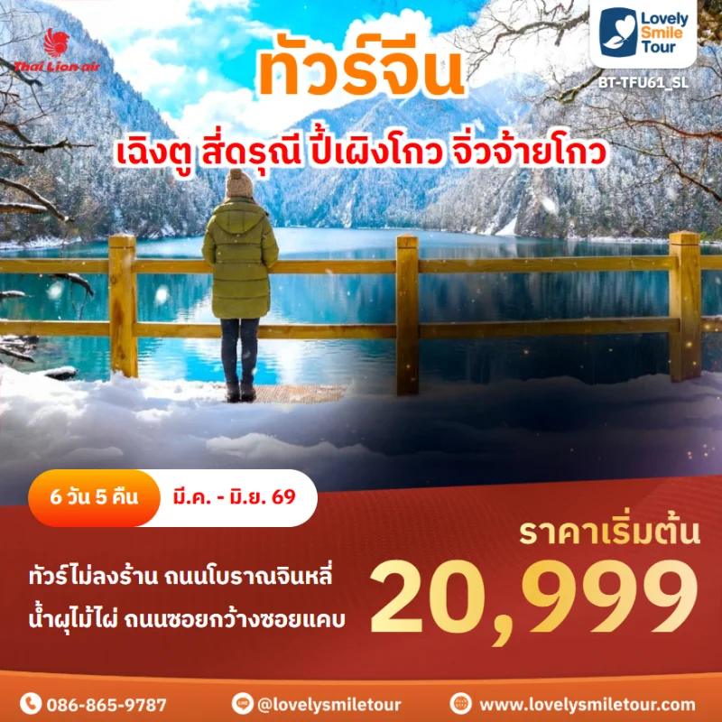 Lovely Smile Tour มีแพ็กเกจ ทัวร์เฉิงตู สี่ดรุณี หวงหลง จิ่วจ้ายโกว ให้เลือกหลายรูปแบบ มีทั้งแบบไม่เข้าร้านรัฐบาลและแบบเข้าร้านรัฐบาล พักโรงแรมระดับ 4-5 ดาว สายการบินมีทั้งแบบ Full Service และ Low Cost หากสนใจจองแพ็กเกจไหน แอดไลน์หรือโทรสอบถามได้เลย