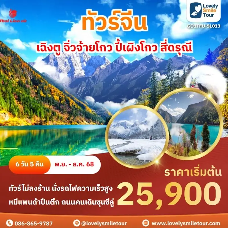 Lovely Smile Tour มีแพ็กเกจ ทัวร์เฉิงตู สี่ดรุณี หวงหลง จิ่วจ้ายโกว ให้เลือกหลายรูปแบบ มีทั้งแบบไม่เข้าร้านรัฐบาลและแบบเข้าร้านรัฐบาล พักโรงแรมระดับ 4-5 ดาว สายการบินมีทั้งแบบ Full Service และ Low Cost หากสนใจจองแพ็กเกจไหน แอดไลน์หรือโทรสอบถามได้เลย