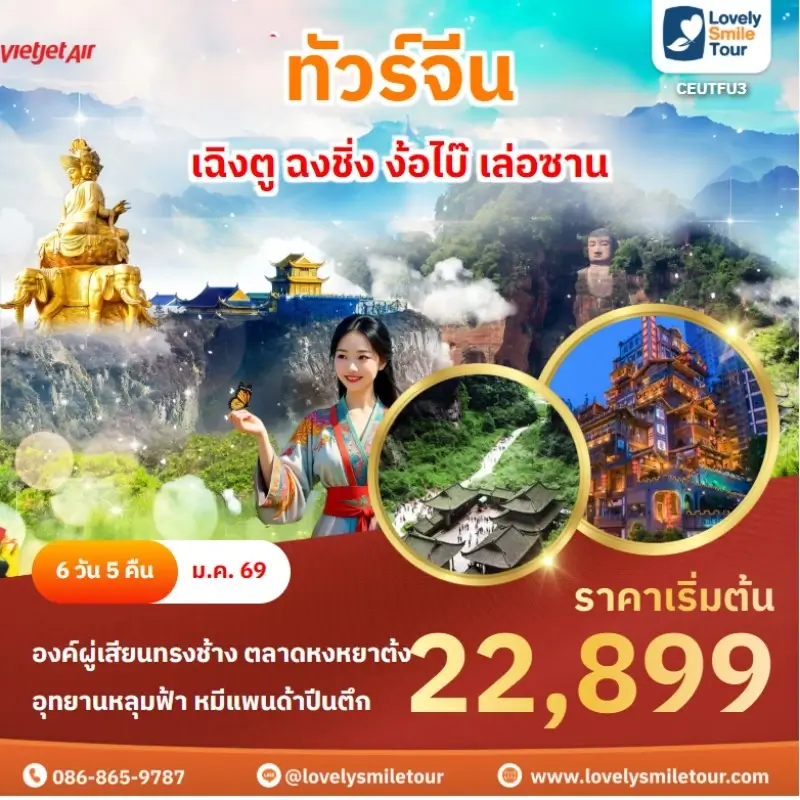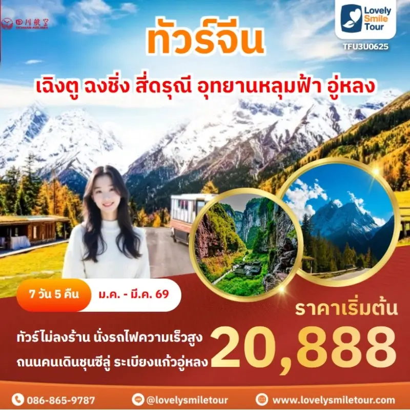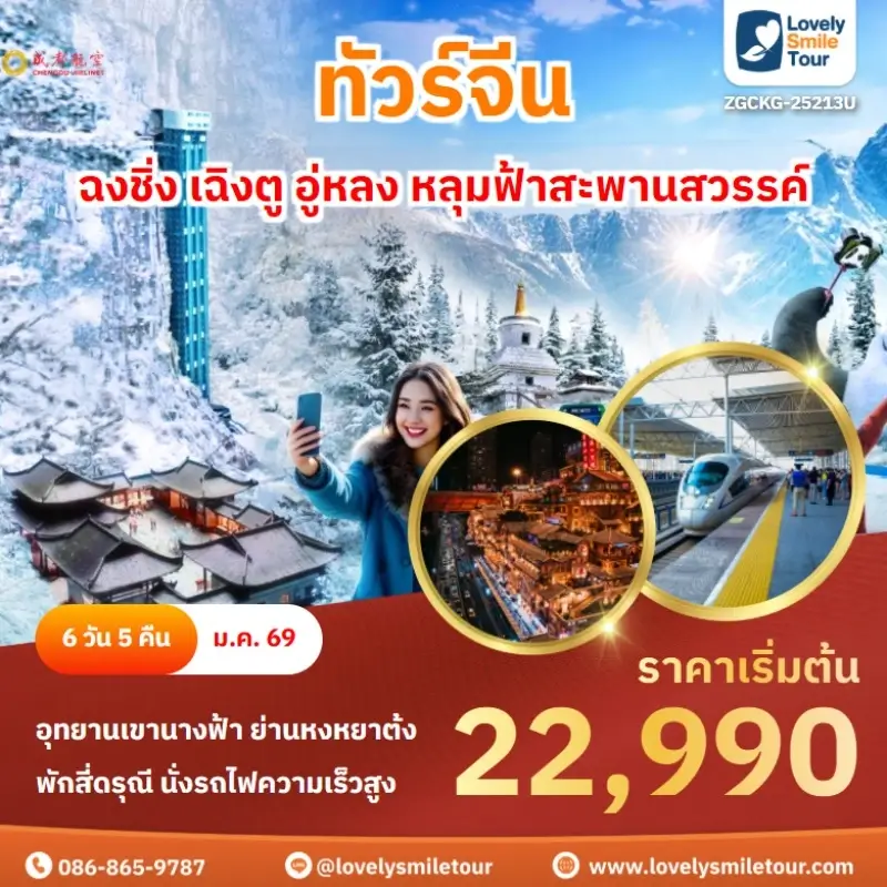 Lovely Smile Tour มีแพ็กเกจ ทัวร์ฉงชิ่ง ให้เลือกหลายรูปแบบ มีทั้งแบบไม่เข้าร้านรัฐบาลและแบบเข้าร้านรัฐบาล พักโรงแรมระดับ 4-5 ดาว สายการบินมีทั้งแบบ Full Service และ Low Cost หากสนใจจองแพ็กเกจไหน แอดไลน์หรือโทรสอบถามได้เลย