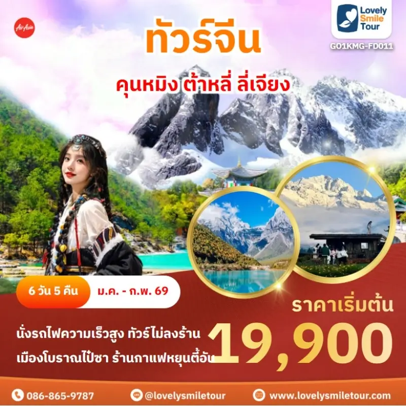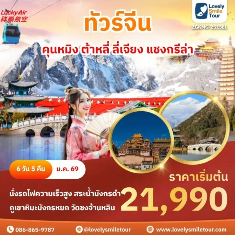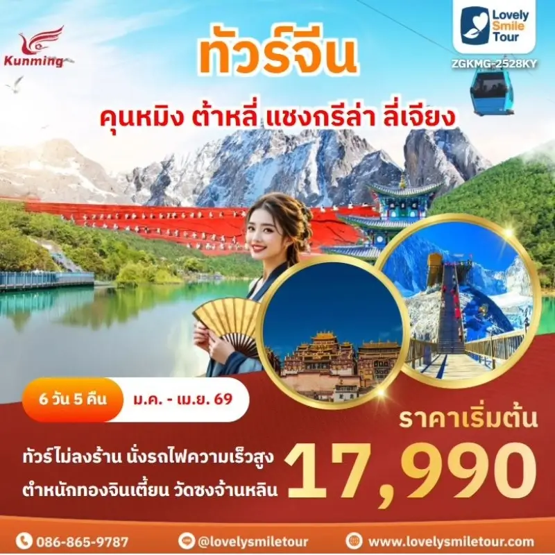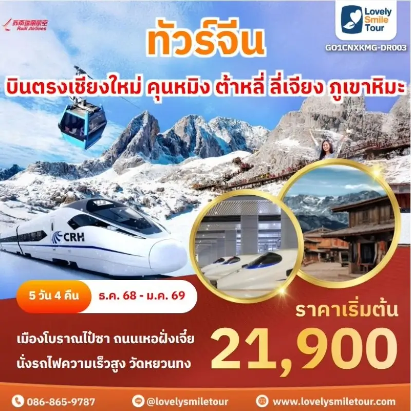ทัวร์จีน – บินตรงเชียงใหม่ คุนหมิง ต้าหลี่ ลี่เจียง ภูเขาหิมะ