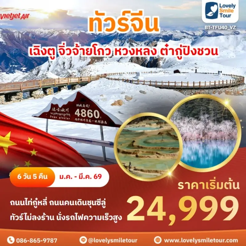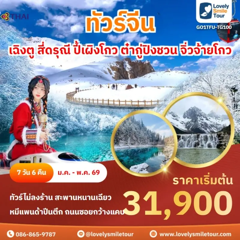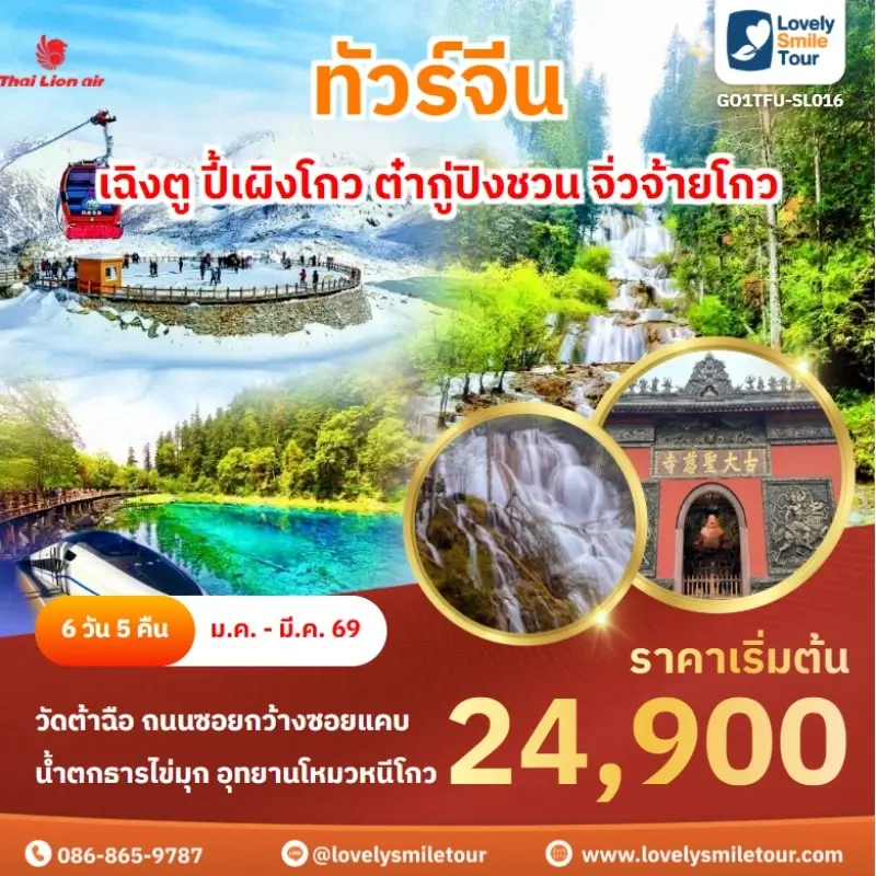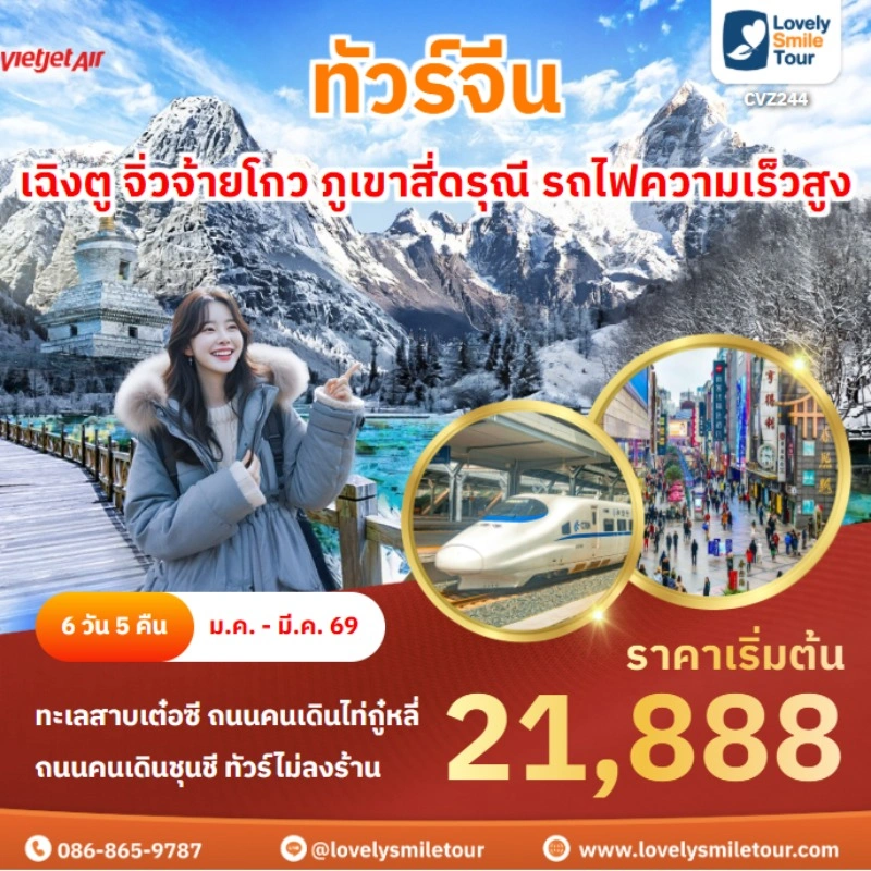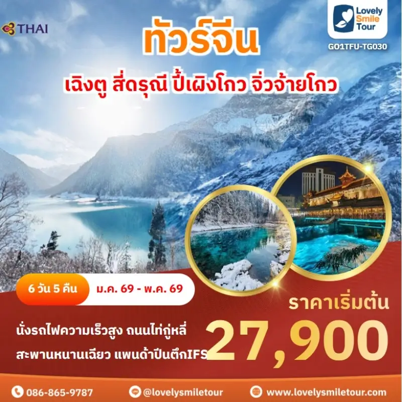 Lovely Smile Tour มีแพ็กเกจ ทัวร์จิ่วจ้ายโกว ให้เลือกหลายรูปแบบ มีทั้งแบบไม่เข้าร้านรัฐบาลและแบบเข้าร้านรัฐบาล แบบรวมค่ารถอุทยานและแบบยังไม่รวม พักโรงแรมระดับ 4-5 ดาว สายการบินมีทั้งแบบ Full Service และ Low Cost บางแพ็กเกจได้นั่งรถไฟความเร็วสูง หากสนใจจองแพ็กเกจไหน แอดไลน์หรือโทรสอบถามได้เลย