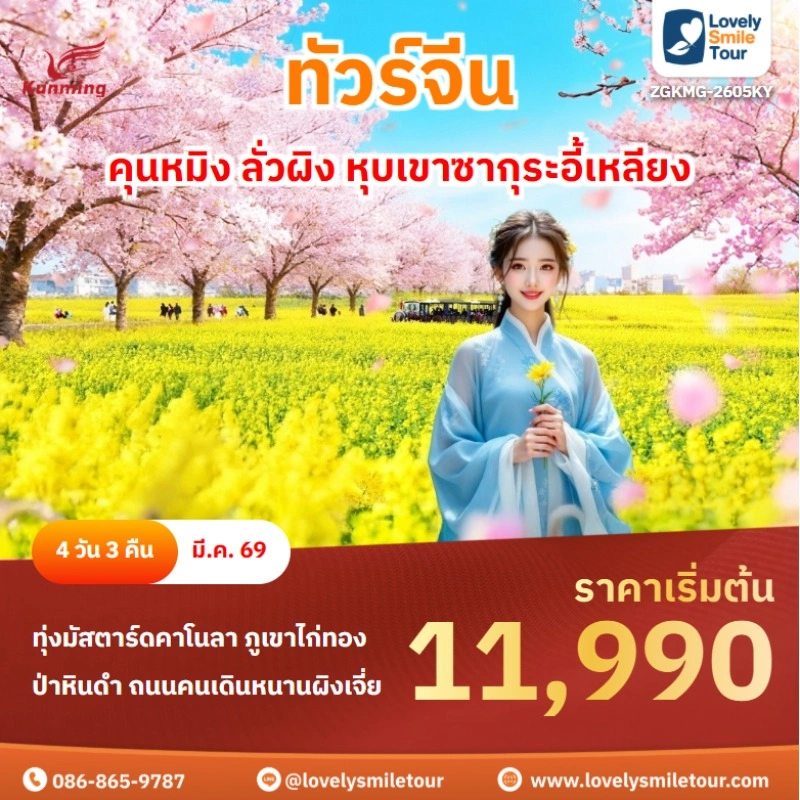 ทัวร์จีน – คุนหมิง ป่าหิน ซากุระอี๋เหลียง ทุ่งมัสตาร์ด