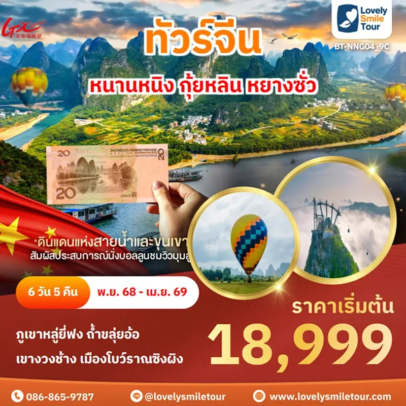 ทัวร์จีน – กวางสี หนานหนิง กุ้ยหลิน หลงเซิ่น หยางซั่ว