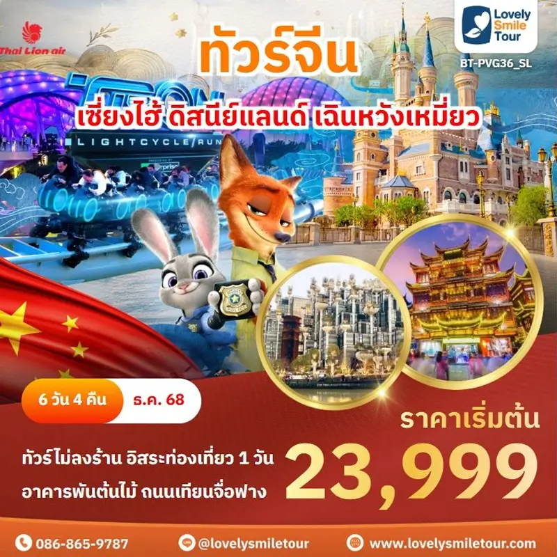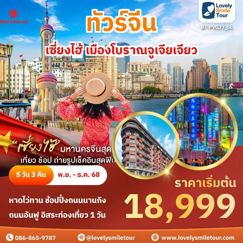 Lovely Smile Tour มีแพ็กเกจ ทัวร์เซี่ยงไฮ้ ให้เลือกหลายรูปแบบ มีทั้งแบบไม่เข้าร้านรัฐบาลและแบบเข้าร้านรัฐบาล แบบพาเที่ยวทุกวันหรือแบบมีวันอิสระเที่ยวเอง หรือจะไปเที่ยวเซี่ยงไฮ้ดิสนีย์แลนด์ก็ได้ พักโรงแรมระดับ 4-5 ดาว สายการบินมีทั้งแบบ Full Service และ Low Cost หากสนใจจองแพ็กเกจไหน แอดไลน์หรือโทรสอบถามได้เลย