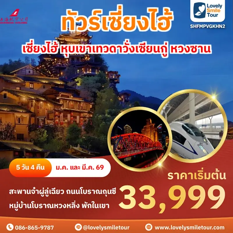 Lovely Smile Tour มีแพ็กเกจ ทัวร์เซี่ยงไฮ้ ให้เลือกหลายรูปแบบ มีทั้งแบบไม่เข้าร้านรัฐบาลและแบบเข้าร้านรัฐบาล แบบพาเที่ยวทุกวันหรือแบบมีวันอิสระเที่ยวเอง หรือจะไปเที่ยวเซี่ยงไฮ้ดิสนีย์แลนด์ก็ได้ พักโรงแรมระดับ 4-5 ดาว สายการบินมีทั้งแบบ Full Service และ Low Cost หากสนใจจองแพ็กเกจไหน แอดไลน์หรือโทรสอบถามได้เลย