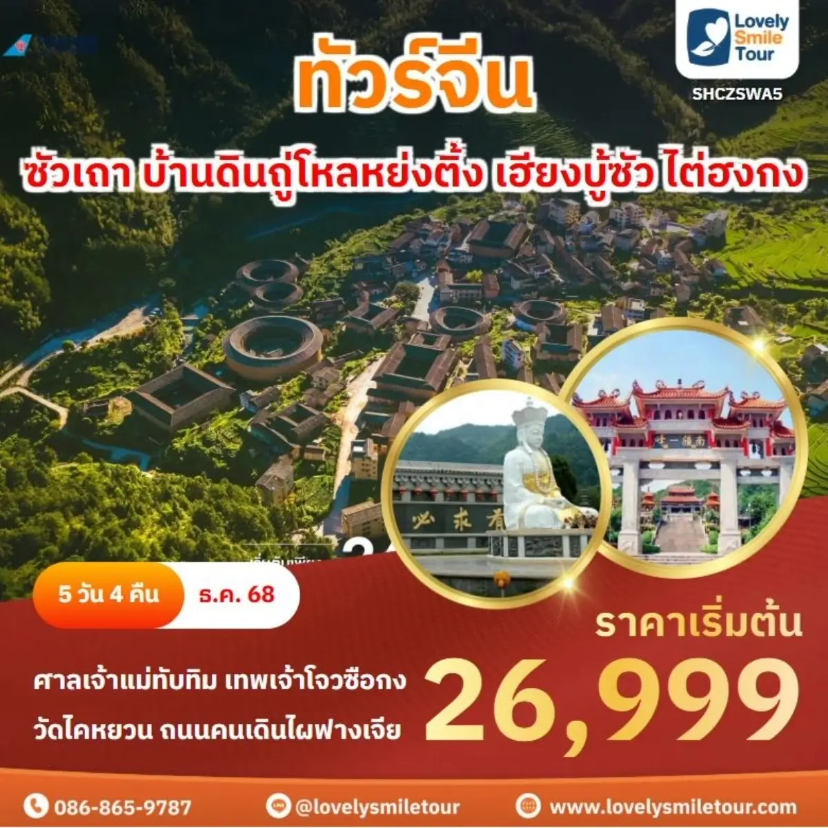 ซัวเถา เมืองชายฝั่งทะเลในมณฑลกวางตุ้ง ประเทศจีน คือดินแดนต้นกำเนิดของชาวจีนแต้จิ๋วที่กระจายตัวอยู่ทั่วเอเชียตะวันออกเฉียงใต้ เป็นเส้นทางท่องเที่ยวที่ผสมผสาน วัฒนธรรม ประวัติศาสตร์ ศาสนา ความเชื่อ ได้อย่างลงตัว หากใครสนใจทัวร์ซัวเถา สามารถทักมาสอบถามข้อมูลหรือแอดไลน์มาได้ที่ LINE ID : @lovelysmiletour ได้เลย