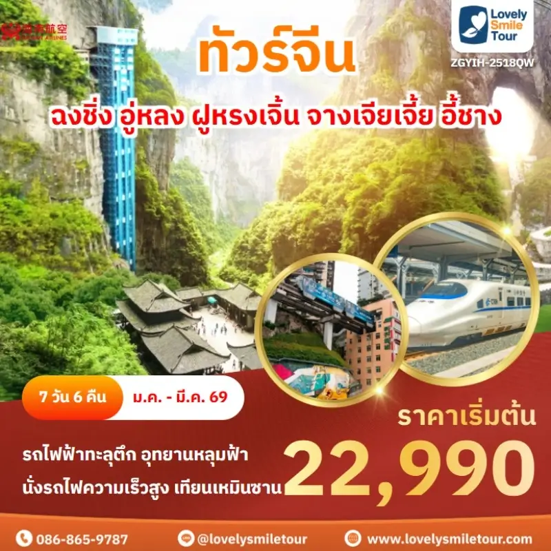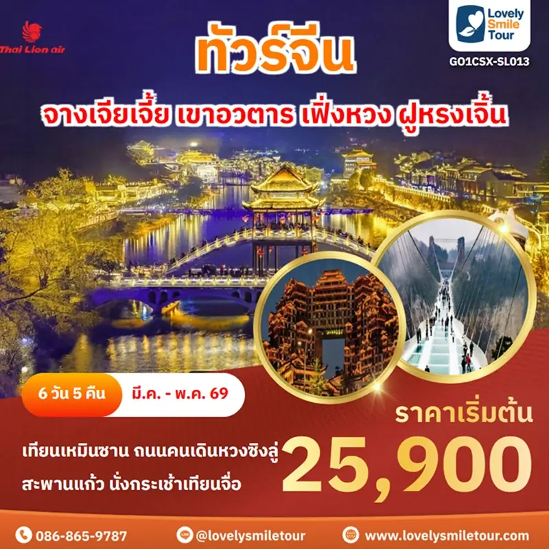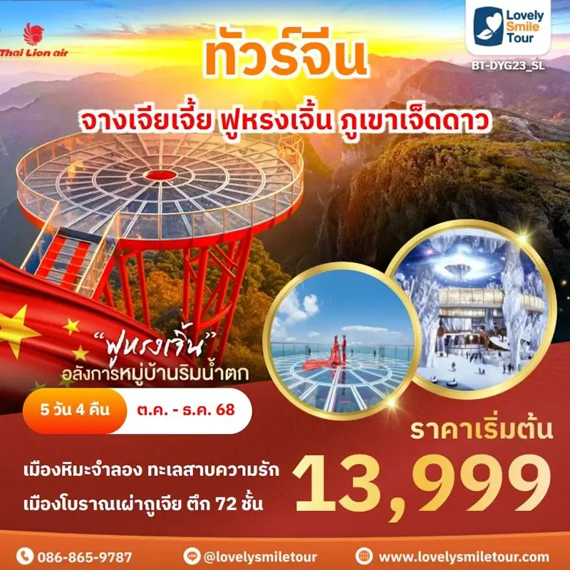 Lovely Smile Tour มีแพ็กเกจ ทัวร์จางเจียเจี้ย ฟูหรงเจิ้น เฟิ่งหวง ประตูสวรรค์ เขาอวตาร ให้เลือกหลายรูปแบบ มีทั้งแบบไม่เข้าร้านรัฐบาลและแบบเข้าร้านรัฐบาล พักโรงแรมระดับ 4-5 ดาว สายการบินมีทั้งแบบบินตรงไปลงจางเจียเจี้ย และบินไปลงฉางซา บางโปรแกรมมีให้นั่งรถไฟความเร็วสูง หากสนใจจองแพ็กเกจไหน แอดไลน์หรือโทรสอบถามได้เลย