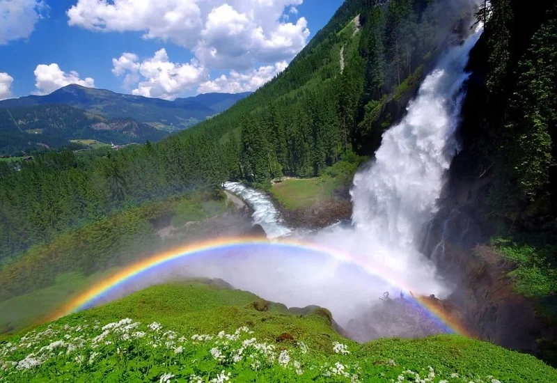น้ำตกกริมล์ (Krimml Waterfalls) คือหนึ่งในน้ำตกที่สูงที่สุดในยุโรป ตั้งอยู่ในอุทยานแห่งชาติ Hohe Tauern ทางตะวันตกของออสเตรีย ด้วยความสูงรวมกว่า 380 เมตร น้ำตกแห่งนี้ไหลลดหลั่นเป็นสามชั้นท่ามกลางป่าสนและภูเขาแอลป์สวยงาม นักท่องเที่ยวสามารถเดินตามเส้นทางชมวิวที่ตัดเลียบหน้าผาเพื่อสัมผัสละอองน้ำเย็นสดชื่นและมองเห็นทิวทัศน์หุบเขาแบบพาโนรามา โดยเฉพาะช่วงฤดูร้อนที่ปริมาณน้ำมากและธรรมชาติโดยรอบจะเขียวเป็นพิเศษ น้ำตกกริมล์จึงเป็นจุดหมายธรรมชาติยอดนิยมของออสเตรีย ที่มอบทั้งความยิ่งใหญ่ สดชื่น และบรรยากาศบริสุทธิ์ของเทือกเขาแอลป์ได้อย่างเต็มอิ่ม