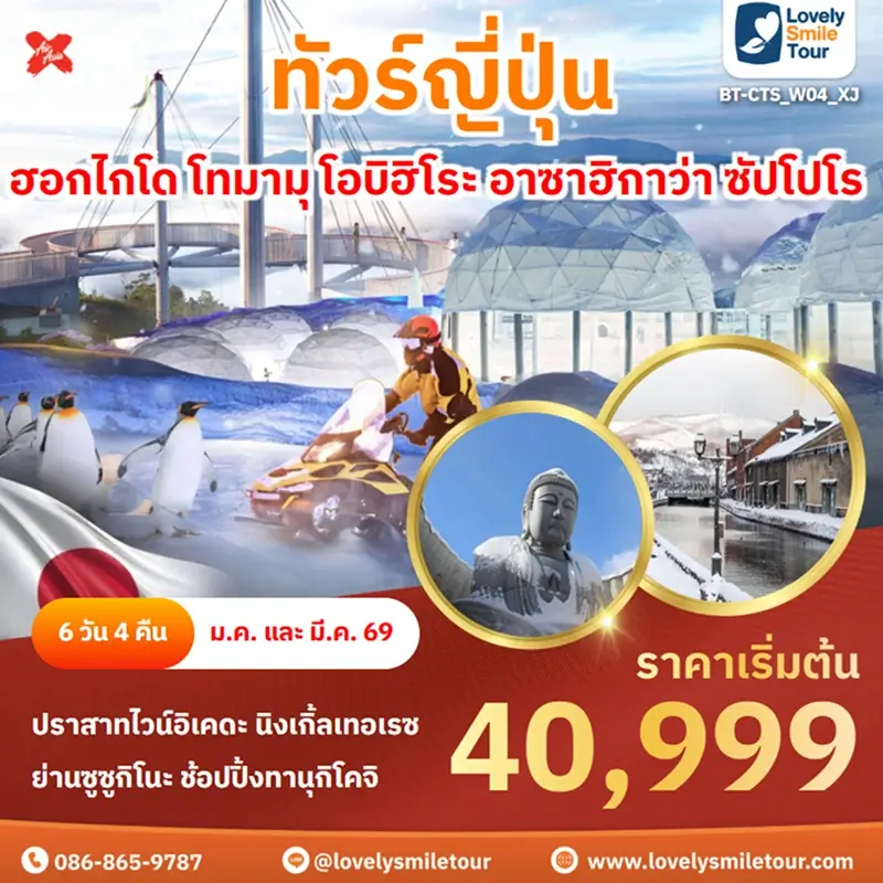 Lovely Smile Tour มีแพ็กเกจ ทัวร์ฮอกไกโด หลากหลายแพ็กเกจให้เลือก ซึ่งฮอกไกโดเมืองที่คนนิยมไปเที่ยวกันในช่วงปลายปี เนื่องจากเป็นเมืองที่อยู่ทางตอนเหนือของญี่ปุ่น อากาศจึงเย็นสบายตลอดทั้งปี มีสถานที่ท่องเที่ยวสวยๆ และยังมีดีเรื่องอาหารอีกด้วย สถานที่ท่องเที่ยวที่เด่นๆ จะอยู่ที่หมู่บ้านเทพนิยายนิงเกิ้ลเทอเรส หอนาฬิกาเมืองซัปโปโร คลองโอตารุ พิพิธภัณฑ์กล่องดนตรีโอตารุ และยังมีสถานที่ท่องเที่ยวที่น่าสนใจอีกมากมาย ถ้าหากสนใจเที่ยวสถานที่สวยงามและสัมผัสกับอากาศเย็นแบบนี้ แอดไลน์หรือโทรสอบถามได้เลย
