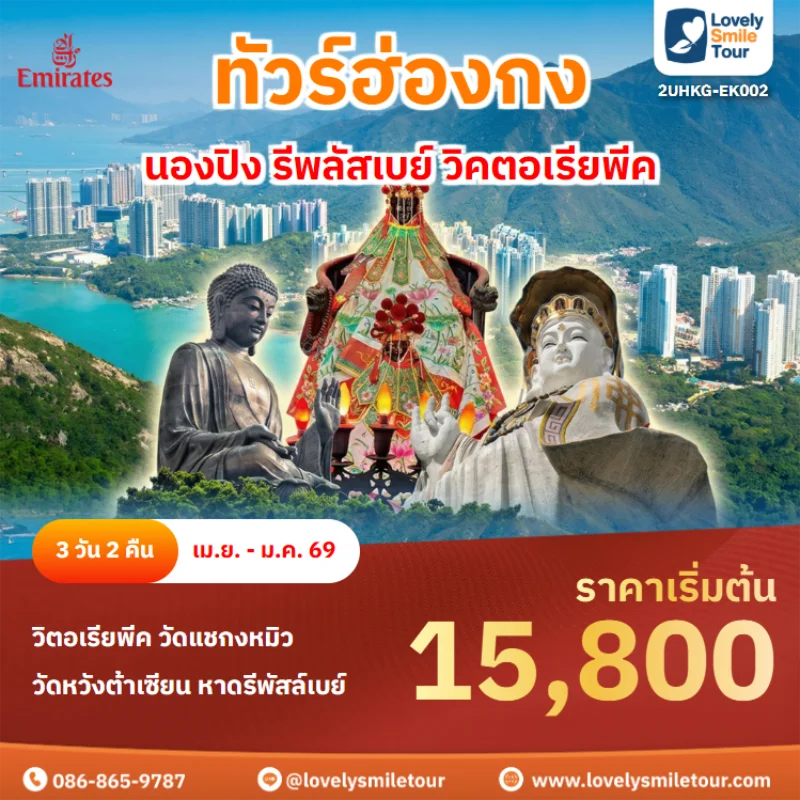 Lovely Smile Tour มีแพ็กเกจ ทัวร์ฮ่องกง ให้เลือกหลายหลายรูปแบบ อาทิเช่น ทัวร์ฮ่องกง ดิสนีย์แลนด์ ไหว้พระ ช้อปปิ้ง หรือเที่ยวแบบหลายเมือง เช่น ฮ่องกง มาเก๊า จูไห่ เซินเจิ้น โดยมีทั้งแบบ 3 วัน 2 คืน และแบบ 4 วัน 3 คืน สนใจจองแพ็กเกจไหน แอดไลน์หรือโทรสอบถามได้เลย