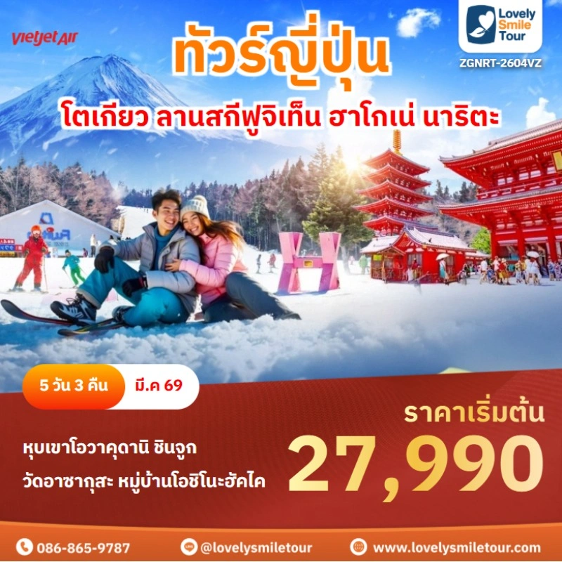 ทัวร์ญี่ปุ่น – โตเกียว ลานสกีฟูจิเท็น ฮาโกเน่ นาริตะ