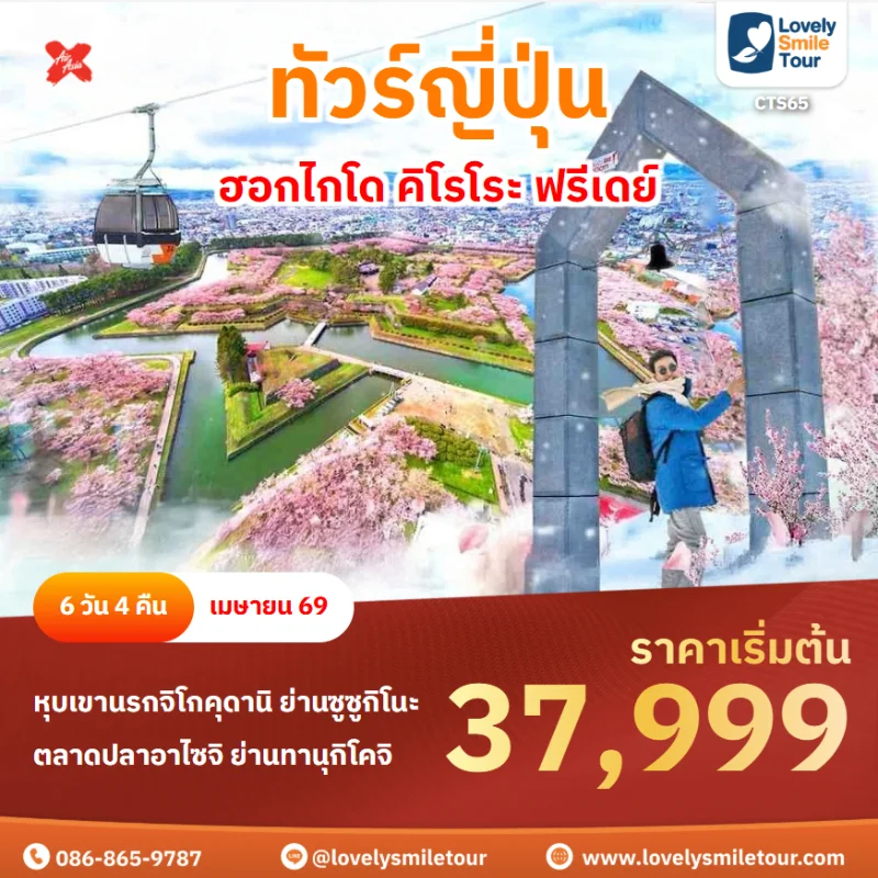 Lovely Smile Tour มีแพ็กเกจ ทัวร์ฮอกไกโด หลากหลายแพ็กเกจให้เลือก ซึ่งฮอกไกโดเมืองที่คนนิยมไปเที่ยวกันในช่วงปลายปี เนื่องจากเป็นเมืองที่อยู่ทางตอนเหนือของญี่ปุ่น อากาศจึงเย็นสบายตลอดทั้งปี มีสถานที่ท่องเที่ยวสวยๆ และยังมีดีเรื่องอาหารอีกด้วย สถานที่ท่องเที่ยวที่เด่นๆ จะอยู่ที่หมู่บ้านเทพนิยายนิงเกิ้ลเทอเรส หอนาฬิกาเมืองซัปโปโร คลองโอตารุ พิพิธภัณฑ์กล่องดนตรีโอตารุ และยังมีสถานที่ท่องเที่ยวที่น่าสนใจอีกมากมาย ถ้าหากสนใจเที่ยวสถานที่สวยงามและสัมผัสกับอากาศเย็นแบบนี้ แอดไลน์หรือโทรสอบถามได้เลย