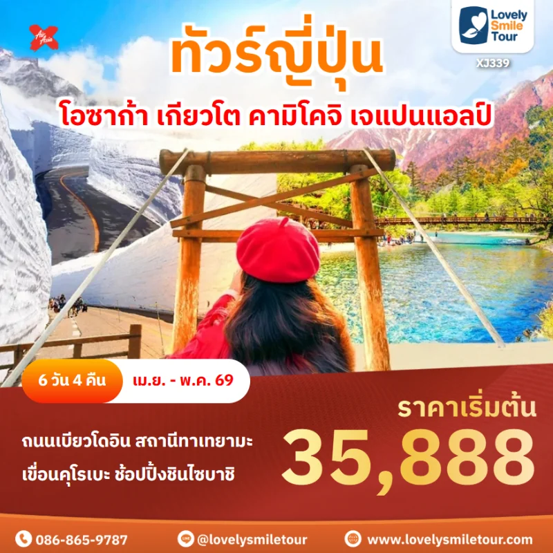 Lovely Smile Tour มีแพ็กเกจ ทัวร์เกียวโต หลากหลายแพ็กเกจให้เลือกหลายแบบ พักโรงแรมระดับ 3 ดาว มีทั้งบิน Full Service และ Low Cost โดยช่วงที่นักท่องเที่ยวนิยมไปมากที่สุด คือ ช่วงใบไม้เปลี่ยนสี ในช่วงปลายเดือนตุลาคม ถึงเดือนพฤศจิกายน หากสนใจจองแพ็กเกจไหน แอดไลน์หรือโทรสอบถามได้เลย