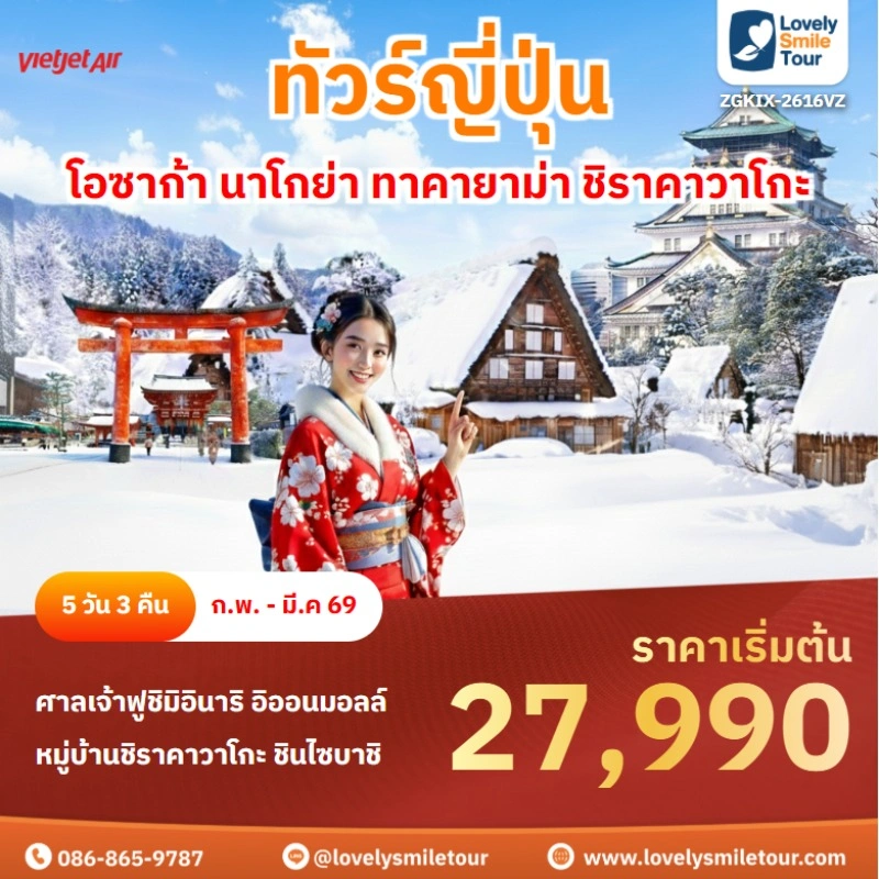 ทัวร์ญี่ปุ่น – โอซาก้า เกียวโต นาโกย่า ชิราคาวาโกะ