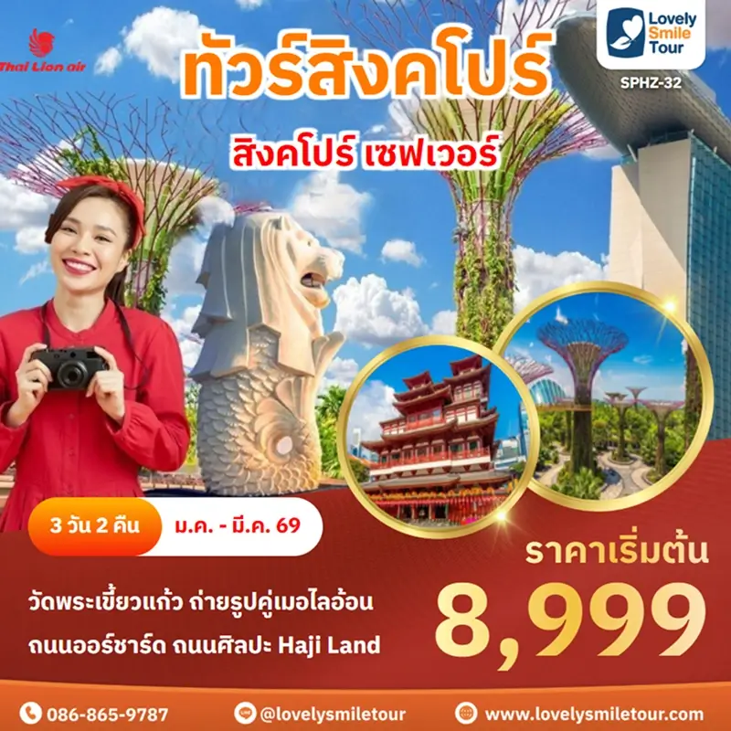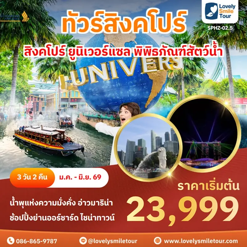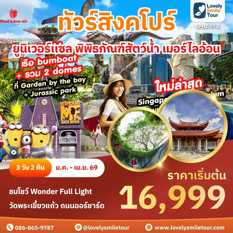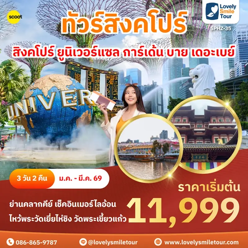 Lovely Smile Tour มีแพ็กเกจ ทัวร์สิงคโปร์ หลากหลายรูปแบบให้เลือก ทั้งแบบ 3 วัน 2 คืน แบบ 4 วัน 3 คืน หรือจะเป็นแบบมีวันอิสระเที่ยวเอง 1 วัน หรือแบบพาเที่ยวทุกวัน มีไกด์ มีรถบัสบริการ สามารถซื้อ Option แบบรวมค่าบัตร Universal Studios Singapore ได้ด้วย สนใจจองแพ็กเกจไหน สามารถแอดไลน์ หรือโทรสอบถามได้เลย