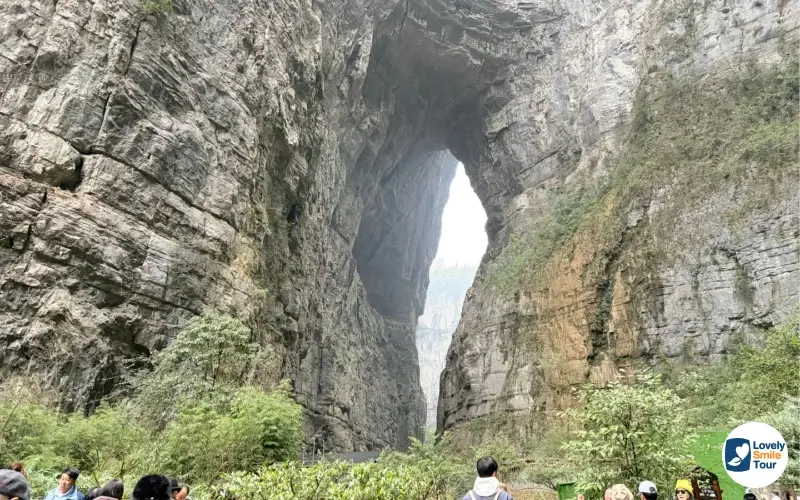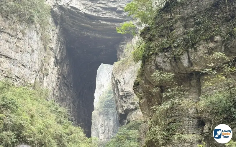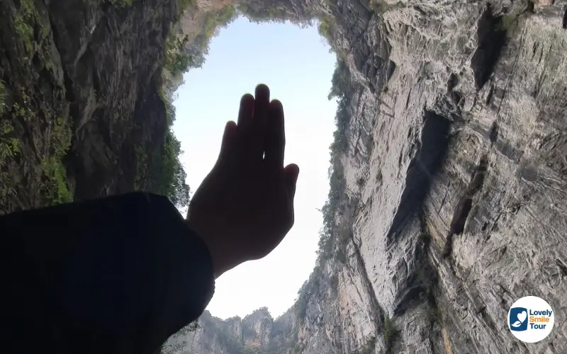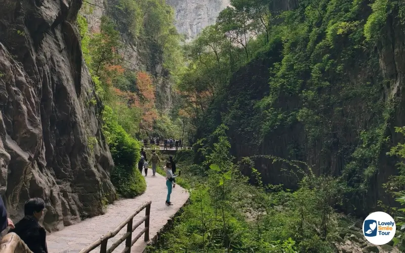 ตลอดเส้นทางเดินเท้าประมาณ 3 กิโลเมตร ก็จะเต็มไปด้วยธรรมชาติต่างๆ มากมาย ไม่ว่าจะเป็นภูเขาสูง ต้นไม้สีเขียวขจีมากมาย น้ำตก ลำธารใส ทำให้บรรยากาศสดชื่นและเย็นสบายตลอดทั้งทาง นอกจากนี้ยังสามารถมองเห็นทัศนียภาพของหลุมยุบและสามารถมองเห็นท้องฟ้าเป็นวงกลมผ่านช่องว่างระหว่างหน้าผา ซึ่งเป็นมุมที่ช่างภาพและนักท่องเที่ยวทุกคนต้องเก็บภาพไว้