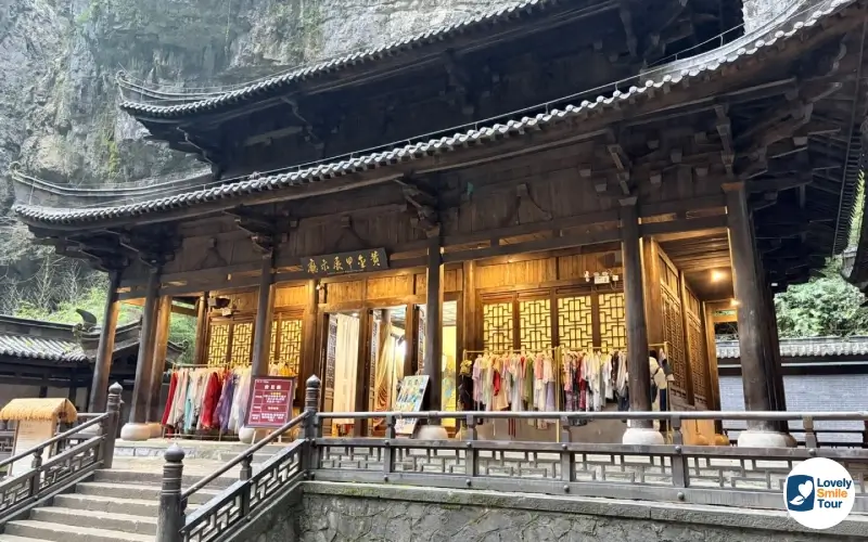 จุดนี้ถือเป็นจุดถ่ายรูปยอดฮิตของนักท่องเที่ยวทุกคนเลยก็ว่าได้ โดยโรงเตี๊ยมจะมีลักษณะเป็นอาคารไม้ทรงจีนโบราณที่ถูกสร้างขึ้นเพื่อใช้เป็นฉากในภาพยนตร์เรื่อง Curse of the Golden Flower ของผู้กำกับจางอี้โหมว ตัวอาคารจะตั้งอยู่กลางหุบเขา ตัดกับฉากหลังที่เป็นหน้าผาหินปูนสูงชัน และต้นไม้สีเขียวมากมาย ทำให้บรรยากาศดูเงียบสงบและงดงามเป็นอย่างมาก โดยภายในโรงเตี๊ยมจะเป็นร้านขายของฝากต่างๆ และยังมีร้านเช่าชุดจีนโบราณให้ได้แต่งตัวถ่ายรูปกันอีกด้วย