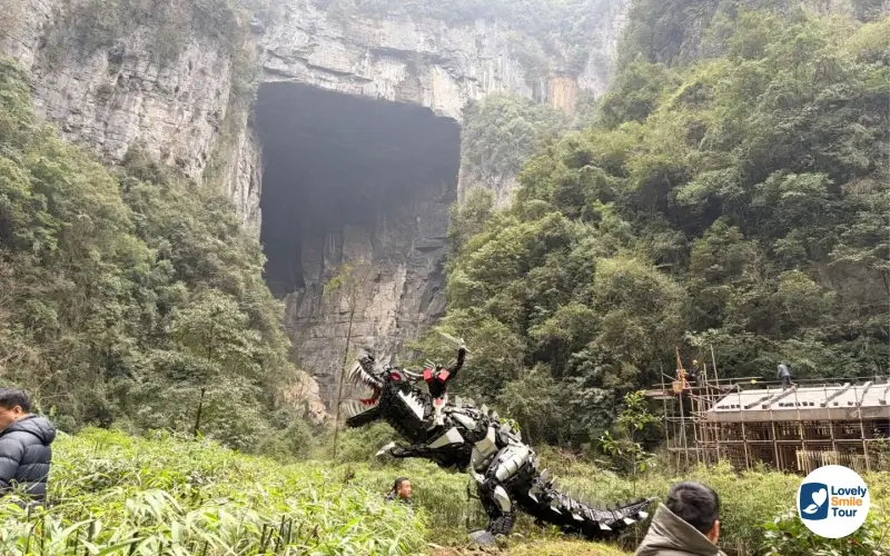 นอกจากจะเป็นสถานที่ถ่ายทำภาพยนตร์จีนเรื่อง Curse of the Golden Flower แล้ว ที่นี่ยังเป็นสถานที่ถ่ายทำหนังฮอลลีวูดชื่อดังอย่าง Transformers: Age of Extinction อีกด้วย ซึ่งบริเวณหน้าอุทยานจะมีรูปปั้นหุ่นยนต์ Bumblebee ตั้งอยู่ เพื่อให้นักท่องเที่ยวได้ไปถ่ายรูปเป็นที่ระลึกกันด้วย และนอกจากนี้ยังมีรูปปั้นหุ่นยนต์ตั้งอยู่ภายในอุทยานอีกด้วย